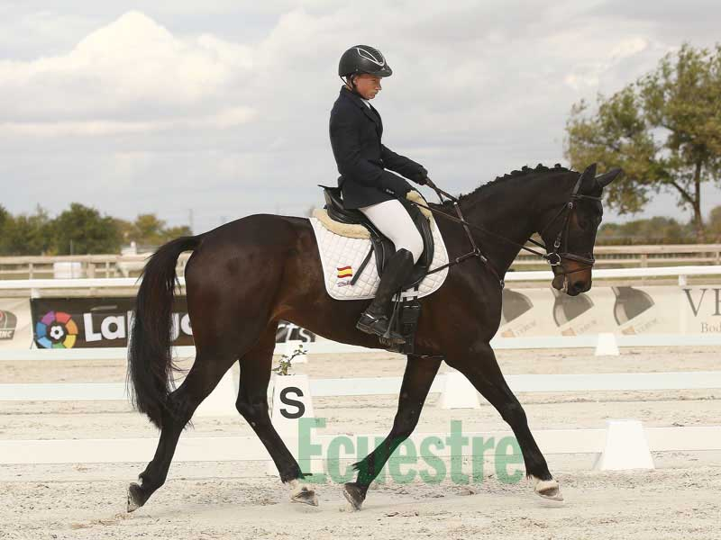 Blanca García con Staff des Champs ha realizado un cross limpio,pero ha penalizado por tiempo y ha obtenido 4 puntos en la pista de salto. Este binomio se ha llevado el bronce en esta categoría.
